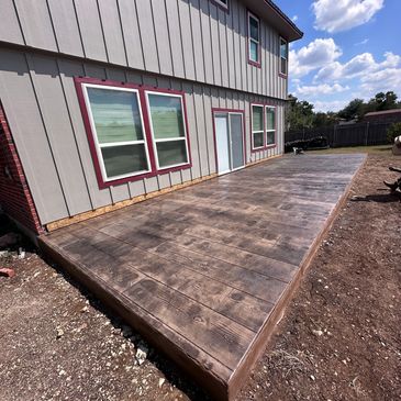 Stamped concrete is a type of concrete that is textured and patterned to mimic natural materials like stone, brick, slate or wood, with a variety of designs and colors.
